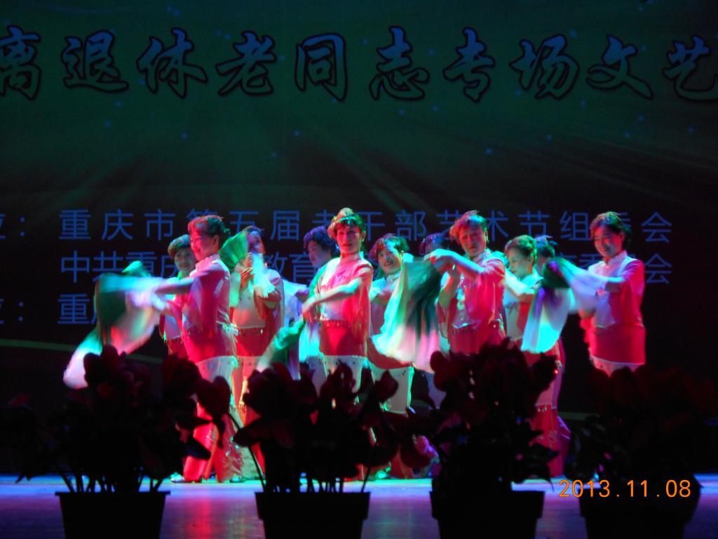 “菊,花之隐逸者也;牡丹,花之富贵者也;莲,花之君子者也。”2013年11月8日下午,44118太阳成tyc城集团离退休老同志的舞蹈《爱莲新说》参加重庆市第五届老干部艺术节展演,获得圆满成功。