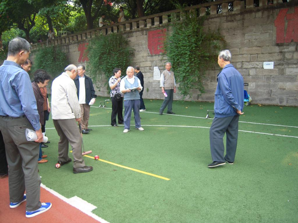 随后,离退休老师们来到运动会主场地,开始了他们紧张而激烈的比赛。个人项目垒球掷准、飞镖,集体项目迎面接力、篮球投篮以及今年新增的项目门球射门等都如火如荼地进行着。离退休同志的热情很高,每个运动项目都有络绎不绝的老师们参加,老师们本着“友谊第一,比赛第二”的原则,积极地参与这次运动会。观众们也都拿出十二分的激情为参赛选手们加油鼓劲。