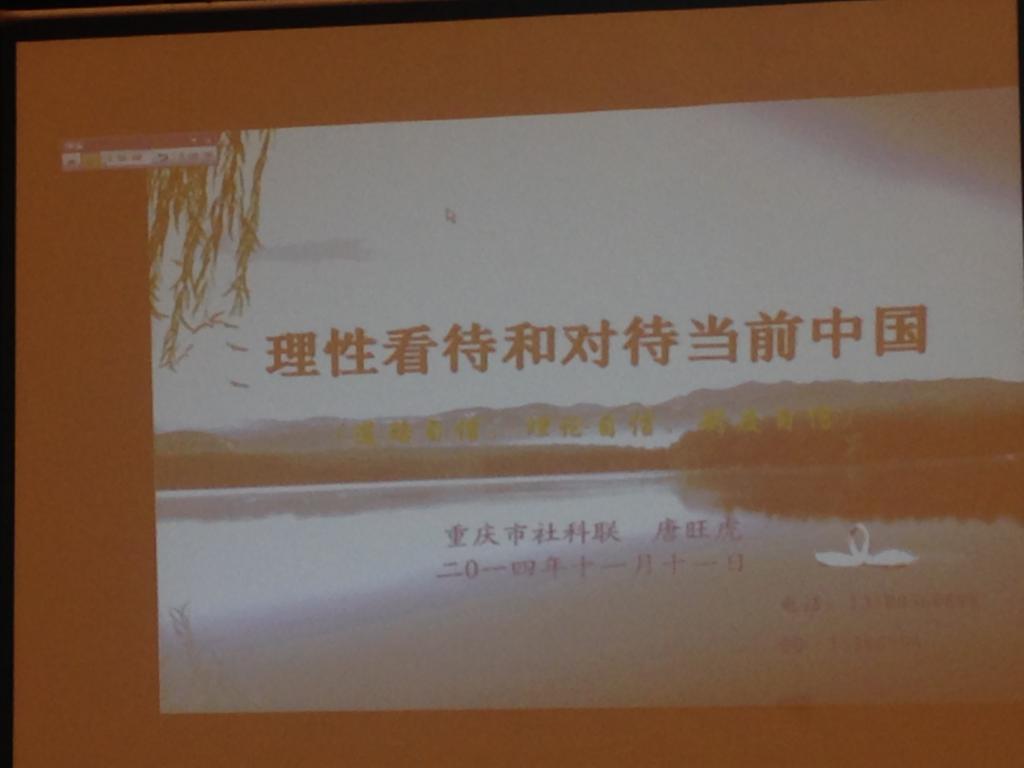 此次专题报告会在市老干部活动中心举办,主题是《理性看待和对待当前中国》,报告人是市社科联学会学术部部长、市社科普及专家库专家唐旺虎老师。