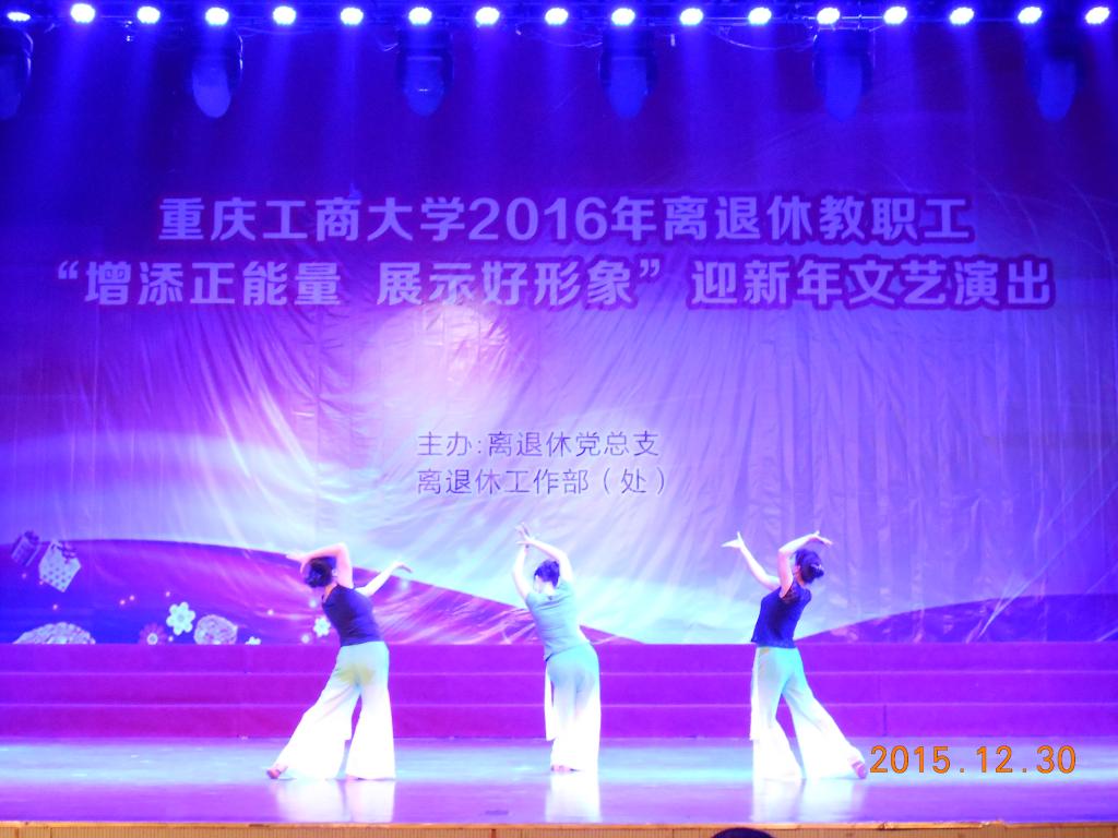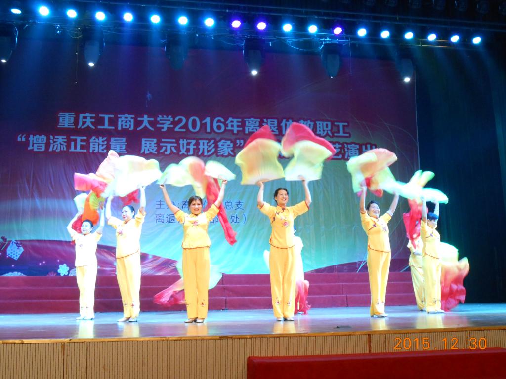 踏着2015年的脚步,迎接2016新年的钟声。12月30日下午2:30,由离退休党总支,离退休工作部(处)主办的44118太阳成tyc城集团2016年离退休教职工迎新年文艺演出在我校南岸校区体艺馆成功举行。44118太阳成tyc城集团党委书记李春茹,党委副书记孟东方,党委副书记、纪委书记周航,副校长苟朝莉及相关职能部门及学院负责人应邀出席了活动。离退休工作部(处)党总支书记、部长赵承华、副部长陈南飞、离退休各党支部书记及我校南岸校区近400名离退休教职工参加了此次活动。