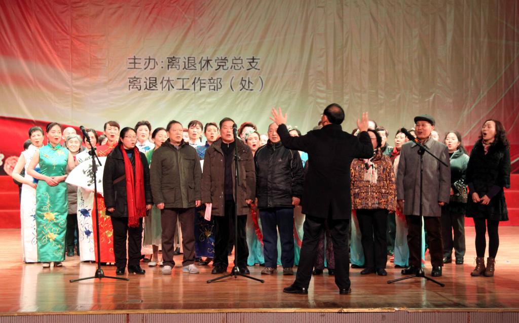 最后,由离退休党总支书记赵承华亲自指挥的各支部书记大合唱《没有共产党就没有新中国》,将演出推向高潮。离退休教职工迎新年文艺演出圆满结束。