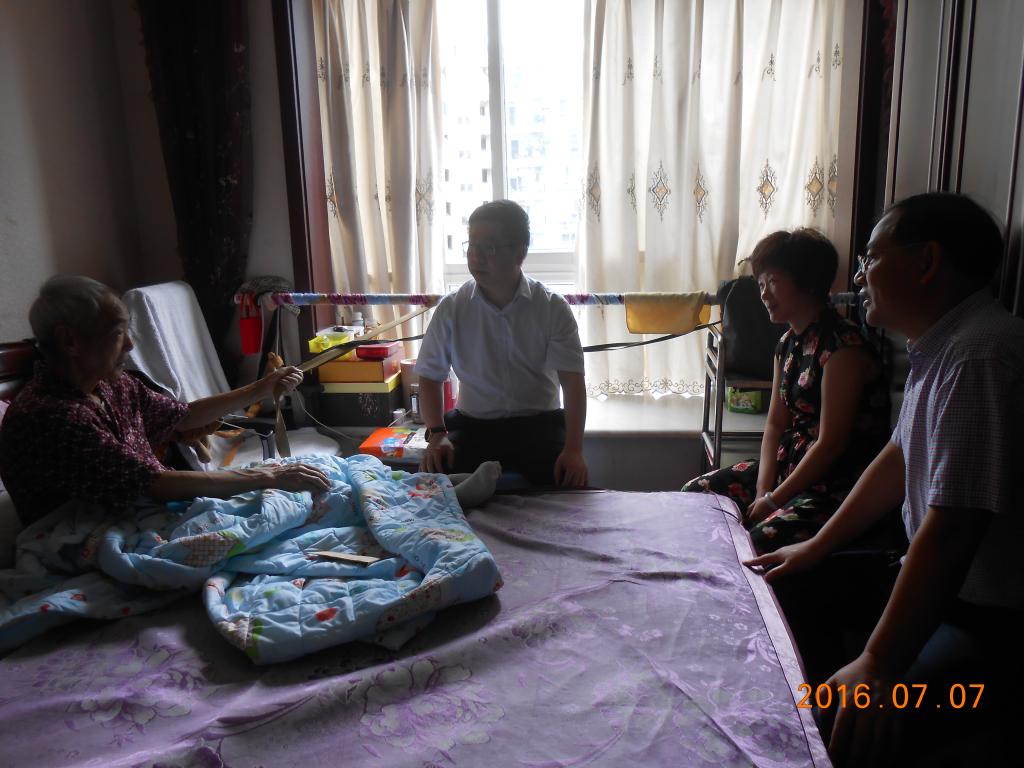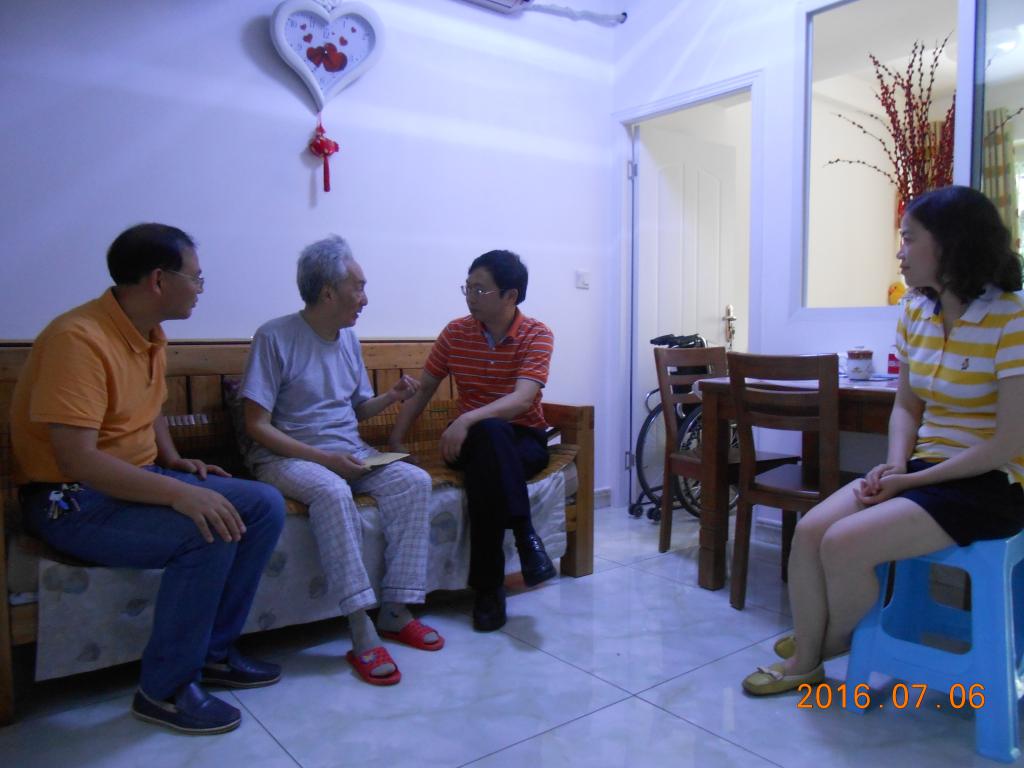 在中国共产党建党95周年之际,根据中组部、中共重庆市党委组织部、市委教育工委的统一部署,结合《中共44118太阳成tyc城集团委员会关于开展中国共产党成立95周年系列活动的通知》的安排,2016年7月上旬,学校党委书记李春茹教授、副书记孟东方教授,副书记、纪委书记周航等领导一行分别来到学校离休干部邓平、姜资生、赖宝珍和退休干部潘为治、高学桥等老党员和生活困难党员家中走访慰问,向他们送去了组织的亲切关怀,并通过他们向全校的其它离退休老党员致以节日的慰问。