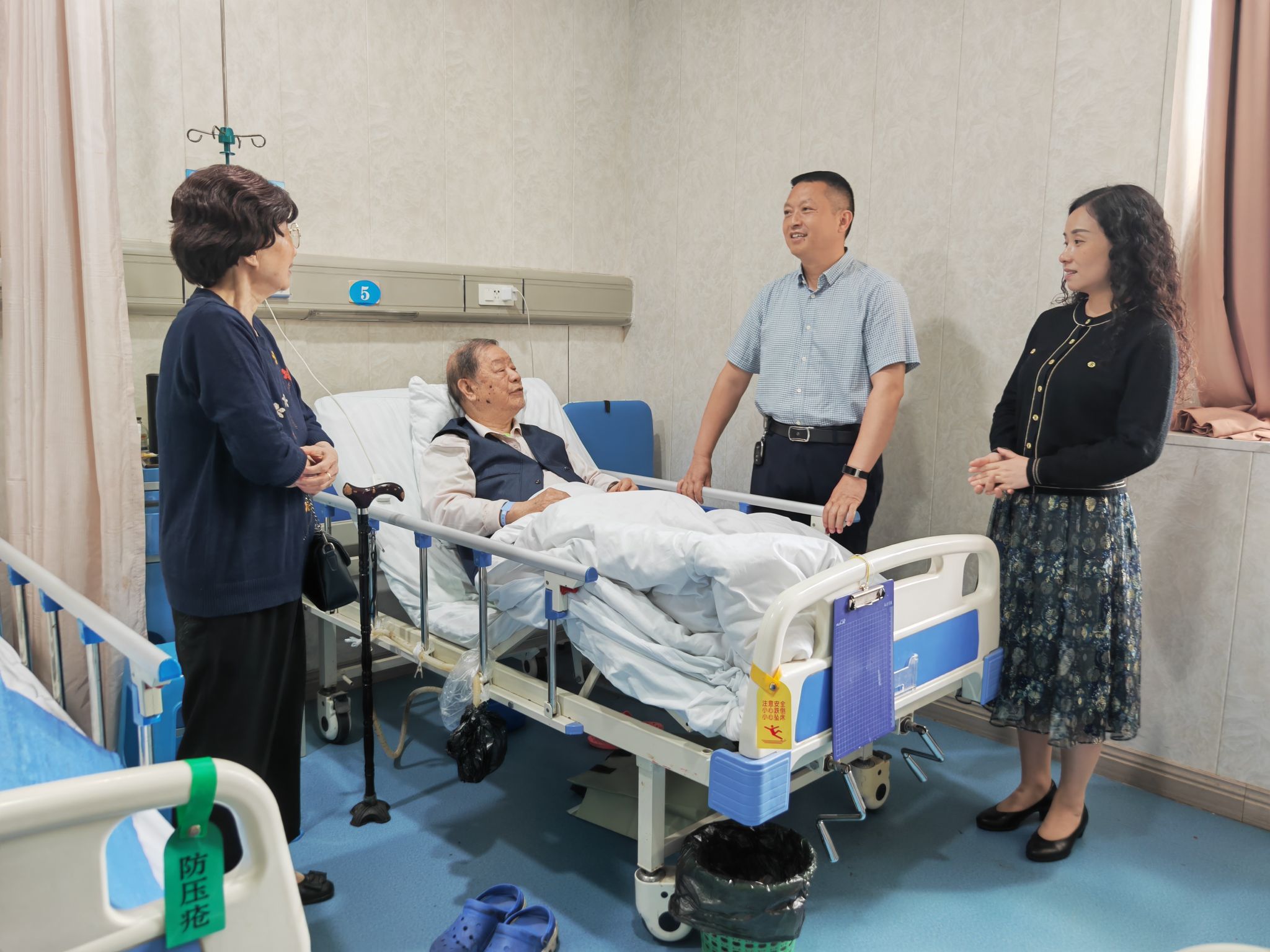 为落实离退休干部服务管理“五送”机制,“五一”节前后,离退休工作部(离退休处)负责人及相关工作人员代表学校到家中走访看望了离休干部朱昌鳌、姜资生和退休党员王文惠老师,到医院看望了原组织部老部长刘文兴同志,送去了慰问。所到之处,了解老同志的起居生活,送达了组织的温暖和祝福,并感谢刘文兴老部长为学校提供宝贵的校史资料。