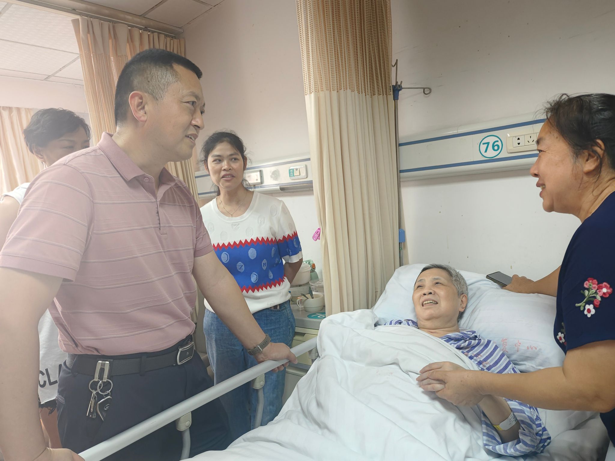 慰问活动中,离退休党委工作人员深入老同志家中、医院病房和福利院,与老党员们亲切交谈,详细了解其身体、生活和思想状况,聆听老党员们讲述工作奋斗历,现场氛围温馨。“七一”走访慰问进一步增强了老党员们的荣誉感、归属感,老党员对学校的发现表示高兴,内心倍感温暖,今后将以更加积极健康心态,发挥余热,为学校立德树人事业贡献力所能及的力量。