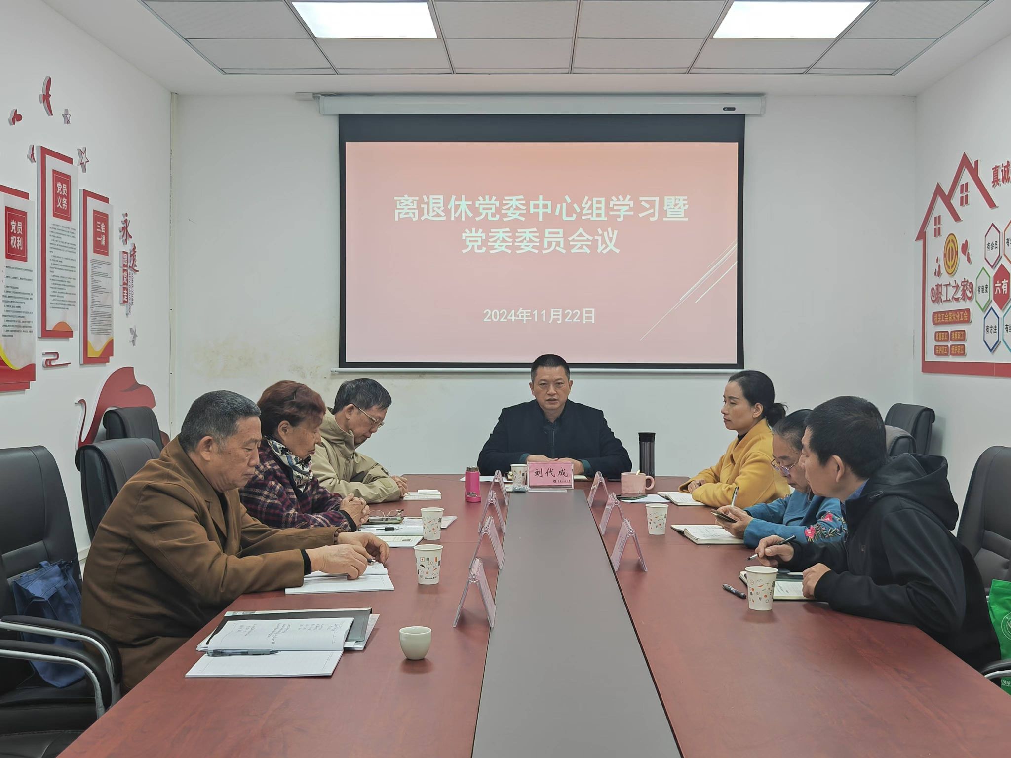 11月22日,离退休党委在离退休部会议室召开了党委中心组学习会,离退休党委委员参加。会上集体学习了袁家军在全市教育大会上的讲话精神。离退休党委书记刘代成总结了11月15日到重庆师范大学调研离退休党建等相关工作开展情况。党委委员黄志亮、周宏林对所学内容作了交流发言。