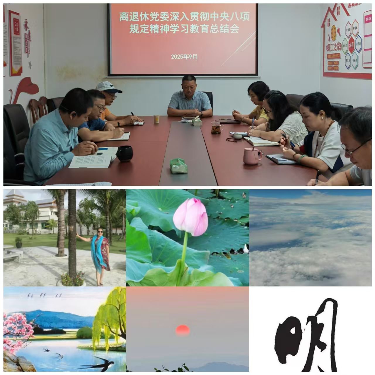 按照上级和学校党委部署要求,9月19日,离退休党委通过线上与线下相结合的方式,在离退休工作部会议室召开了深入贯彻中央八项规定精神学习教育总结会(扩大)。离退休党委全体委员、机关党委离退休工作部支部全体党员参加会议。会议由离退休党委书记刘代成同志主持。