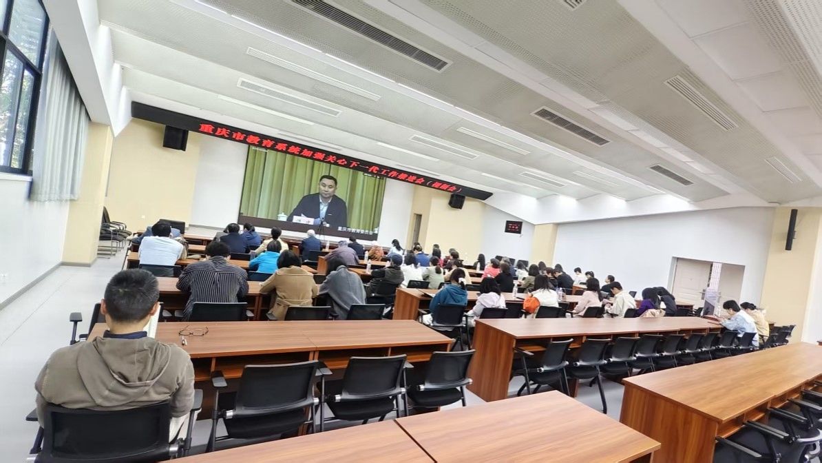 3月26日上午,重庆市教委关工委召开全市教育系统加强新时代关心下一代工作推进会。学校在明德楼室1019设置分会场,我校离退休工作部(处)负责人、关工委的全体同志(关工委秘书长、副秘书长及各二级学院关工委主任、副主任、办公室主任等相关工作人员)参加视频会议,校关工委主要负责人赴市教委主会场参会。市关工委主任何事忠,市教委二级巡视员谯建,市委教育工委委员、市教委副主任、市教委关工委主任江鹏等领导出席会议并讲话。