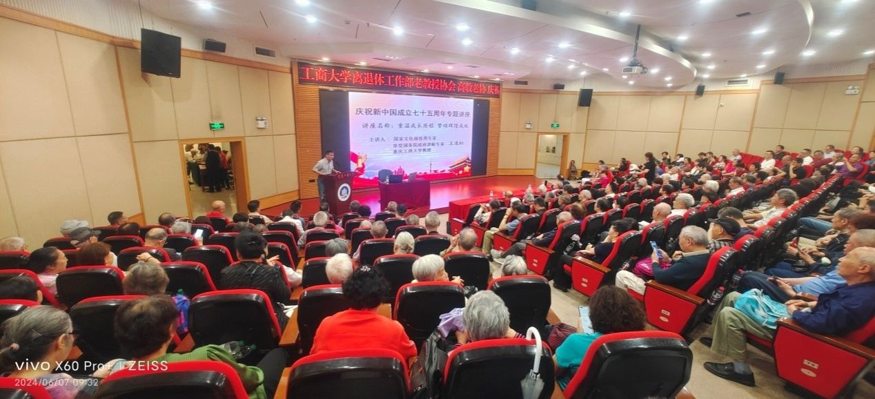 为庆祝中华人民共和国成立75周年,贯彻落实重庆市高教老协有关通知精神,6月7日上午,高教老协44118太阳成tyc城集团分会联合学校老教授协会和离退休工作部(处),邀请重庆市高教老协第十一届理事、学校退休教师王逸虹教授举办了《重温成长历程,赞颂辉煌成就》专题讲座。讲座由高教老协44118太阳成tyc城集团分会会长黄朗主持,300余名协会会员和离退休党委委员、支部书记等代表参加。
