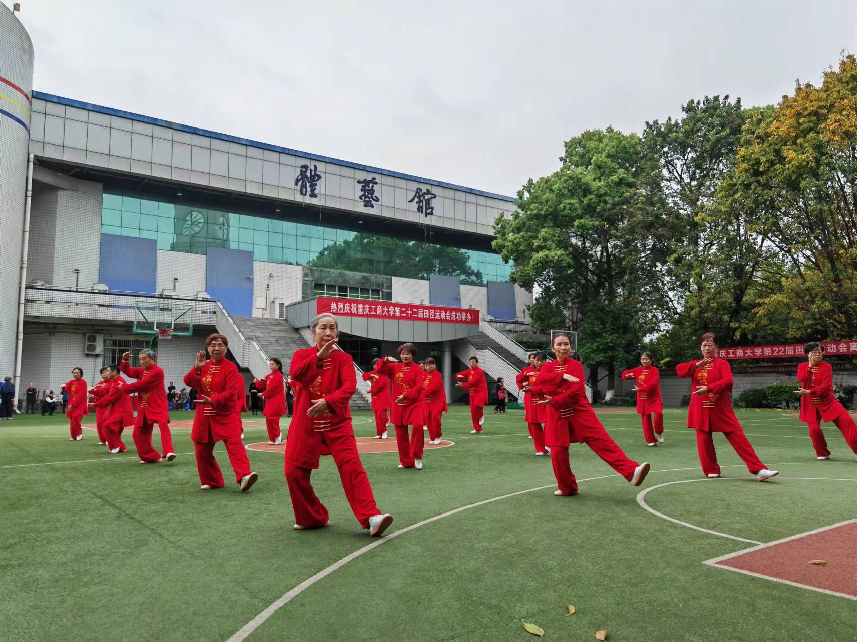 紧接着,校领导与老同志们一起观看了开幕式节目表演。老年大学代表队带来了太极拳和时装风采表演,他们倾情的表演,赢得了大家的阵阵掌声。
