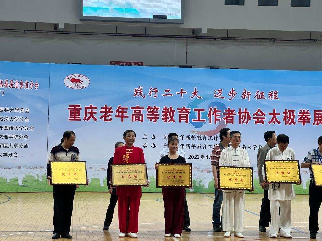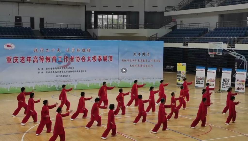 2023年4月21日上午,“践行二十大,迈步新征程”重庆市高教老协太极拳展演活动在西南大学隆重举行。我校高教老协分会带领24名参演老同志前往参加,离退休工作部副部长赵明等3名工作人员陪同。